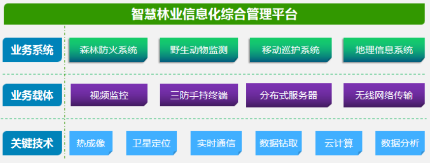 智慧林業(yè)解決方案綜合采用云計算、物聯(lián)網(wǎng)、大數(shù)據(jù)、人工智能等新一代信息技術以及地理信息、遙感測繪相關技術,打造一個基于林業(yè)立體感知、管理協(xié)同高效、生態(tài)價值凸顯、服務內外一體的管控平臺,實現(xiàn)林業(yè)資源動態(tài)監(jiān)管、造林可視化管理、森林防火應急管理,GIS基礎管理等應用場景。