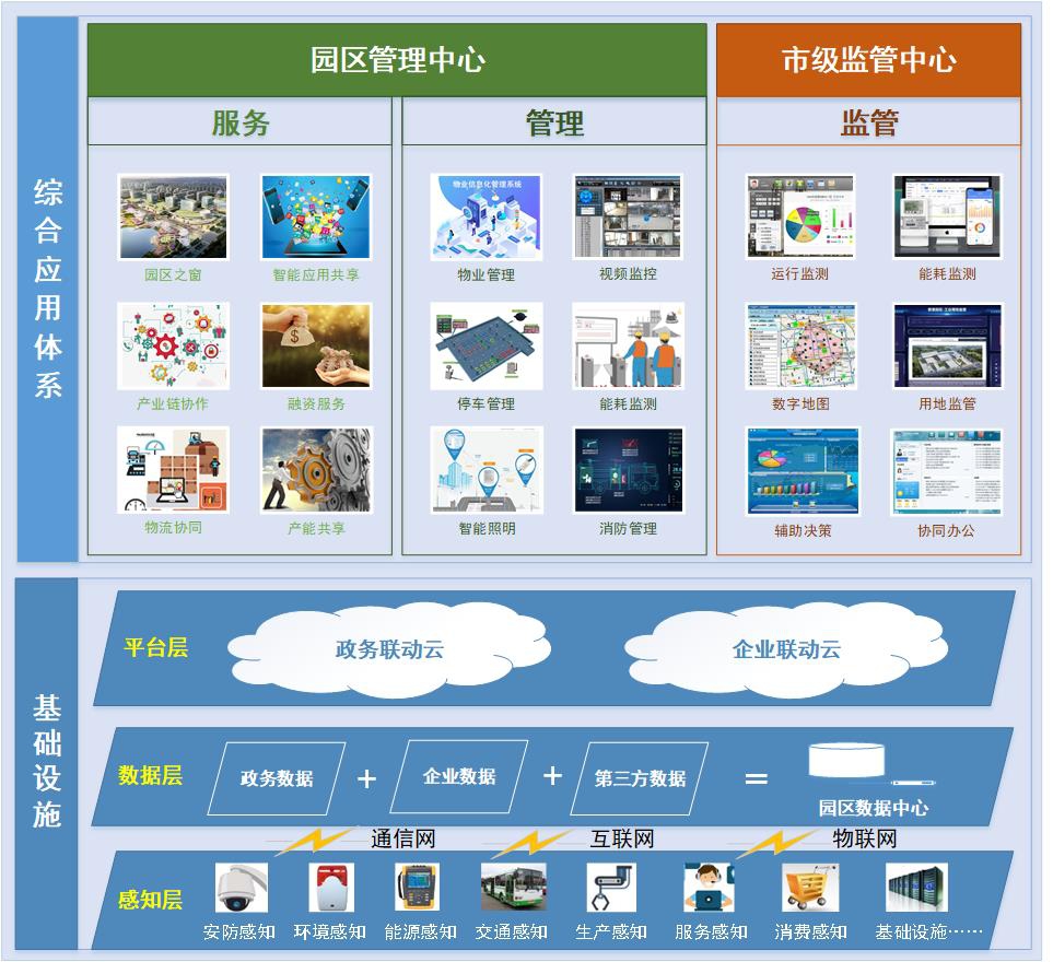智慧園區解決方案是基于園區應用場景的需求打造的一個貫穿園區規劃運營與物業管理、園區基礎設施運行管理與監控、園區能源集中管控與優化以及園區智能報警與安全應急處理的管控一體化平臺。通過數據自動采集、信息實時傳遞、高度集中管控、智能事務處理及隨時隨地服務,為園區內企業提供更好的發展平臺和服務能力,提高園區的產業集聚能力和資源整合能力,提升整個產業的經濟效益。