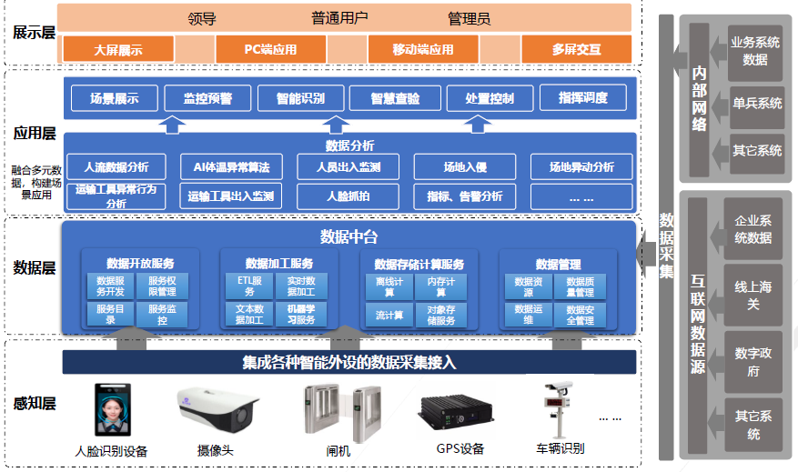 統一聯動指揮:平臺結合現場智能指揮臺以及單兵設備,能夠貫穿前中后臺,實現跨部門統一指揮、上下聯動,真正實現從預警、分析、處置、跟蹤、反饋的封閉式全過程指揮調度,提升海關現場應急處置能力。